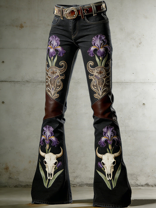 Women's Floral Art Print Flared Trousers